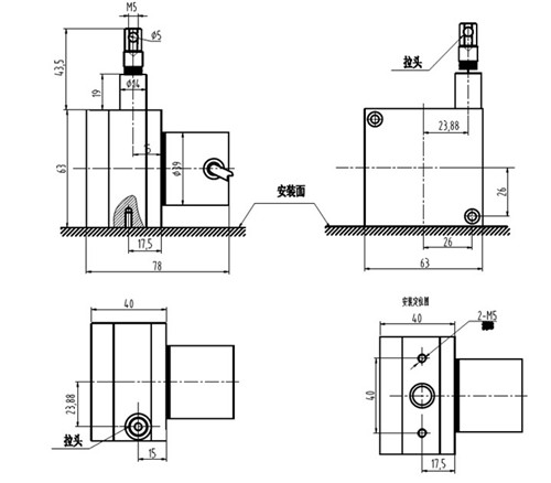 11、若使用非直線運動的機(jī)構(gòu),請自行設(shè)計轉(zhuǎn)向機(jī)構(gòu)或選購我公司拉線位移傳感器附件機(jī)構(gòu);